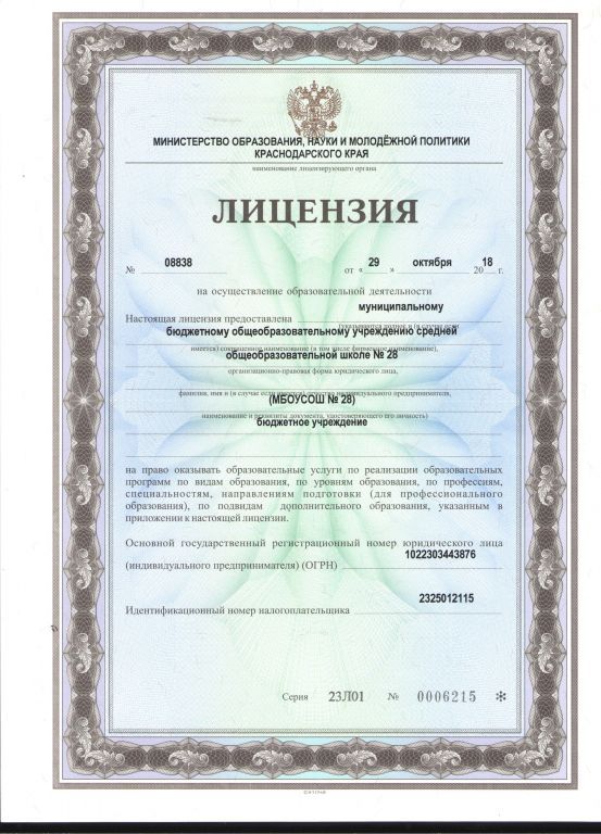 Полное наименование образовательной организации* Муниципальное бюджетное общеобразовательное учреждение средняя общеобразовательная школа №28
