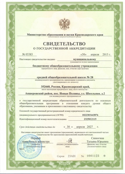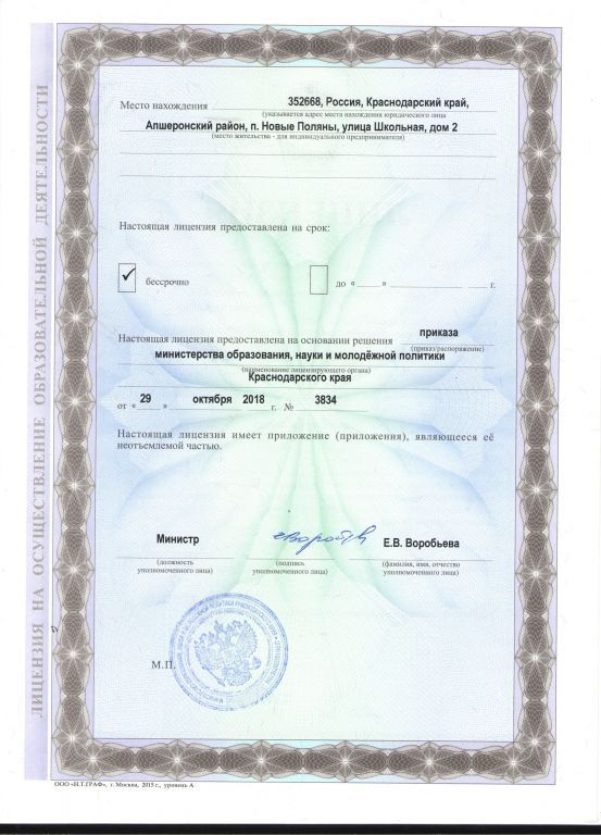 Адрес местонахождения образовательной организации* 352668, Краснодарский край, Апшеронский район, пос. Новые Поляны, ул. Школьная, 2